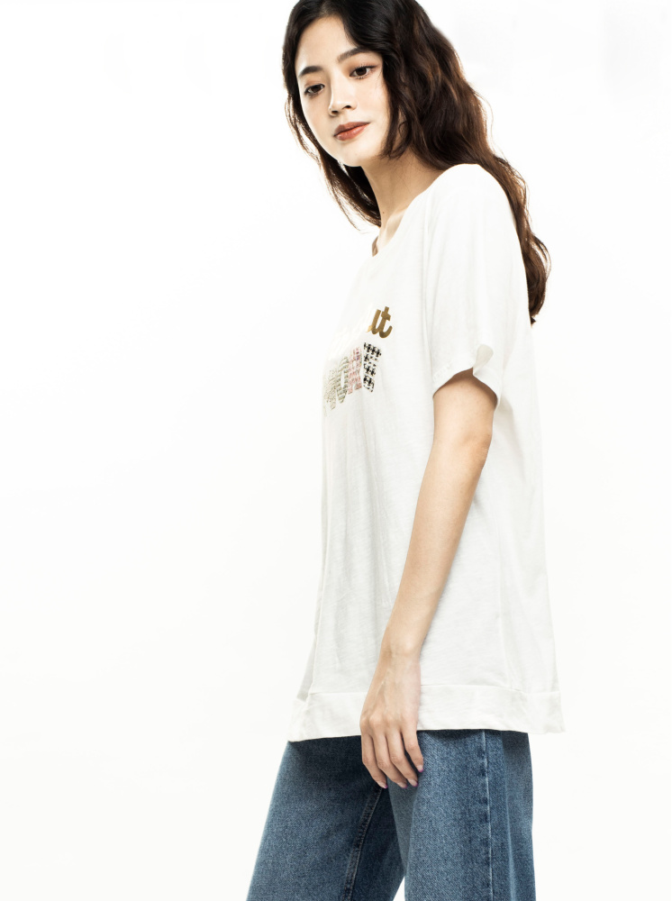• 小香風MORE燙金印花T-黑
