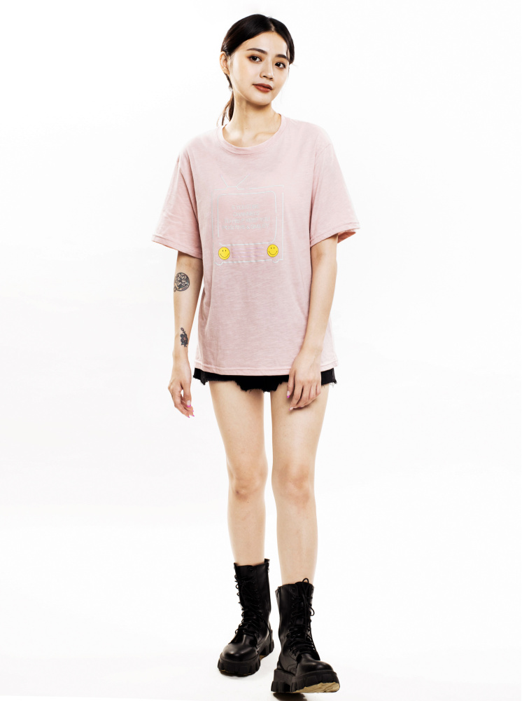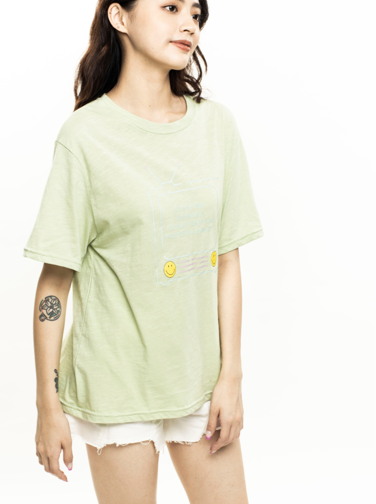 • 手繪TV印花T-淺綠